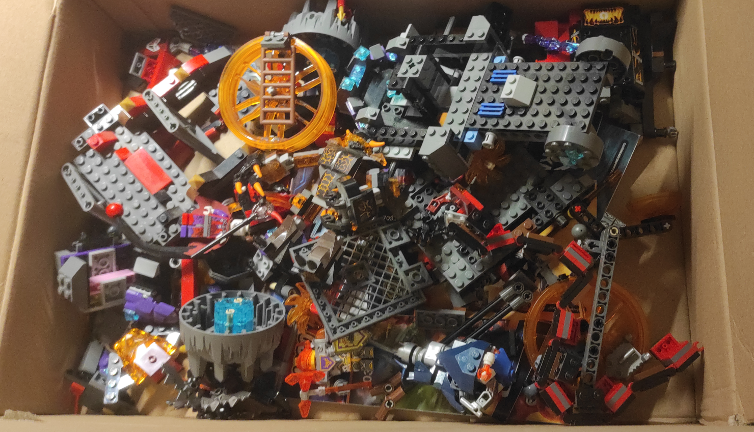 теперь до конца жизни буду думать, это была хитрожопая коробка где просто рандомные кубики по нексо-теме, либо там были реально все эти сеты что ты видишь (а там виден в том числе и тот каменный Колосс, и колесница Джестро и таран Магмара и прочие гигантские сеты) PS: да пофигу в принципе, я уже итак рад прошлой покупкой. Замок Джестро даже еще не отмыд и не построил - в декабре буду