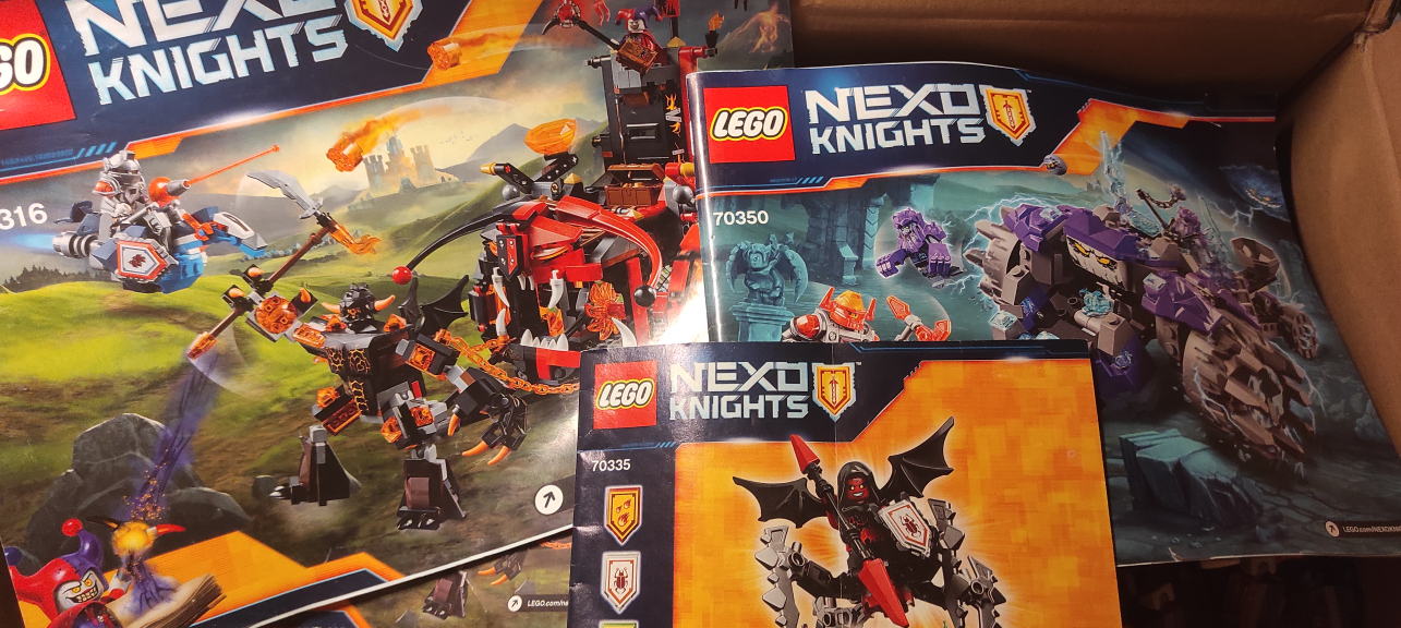 Нексо - помоечник репортинг ин. Это самый грязнющий набор который я нашел из трех (первый был колосс, второй грязная коробка самолета, и это третий гига говняный). Но по дешевой цене (около 6500 за черного рыцаря, замок Джестро и фортрекс) ввиду неимоверно засратого состояния. Уххх, представляю как буду все это чистить, мыть, сушить и лампово собирать.