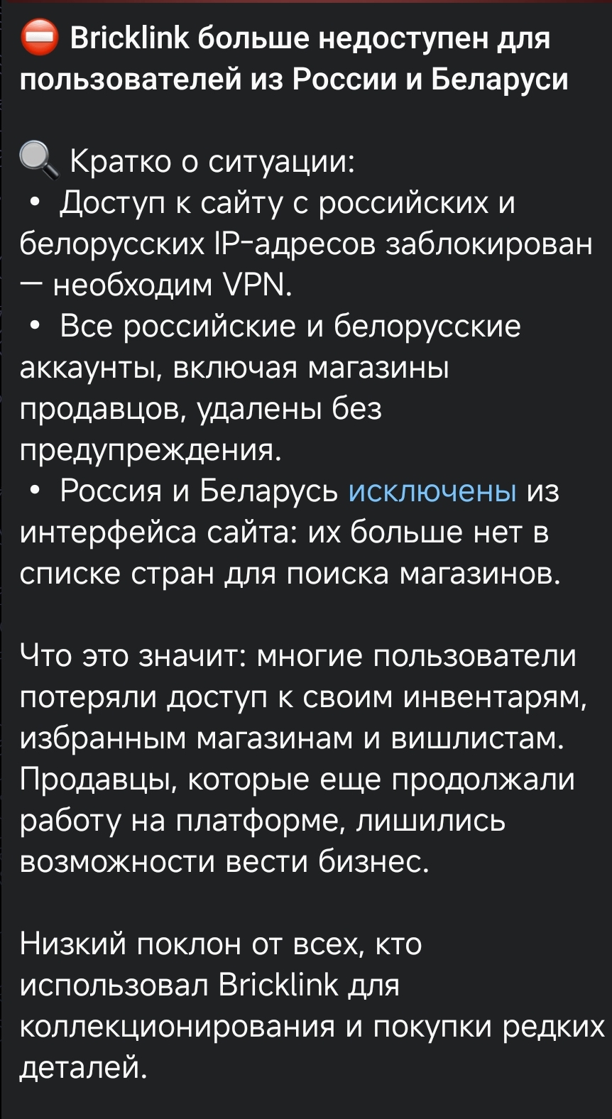 Бля, только сегодня узнал что бриклинк наебнул всех российских (да и белорусов тоже) продавцов. Причем по прямой ссылке страницы продавцов доступны, но нет инвентаря.