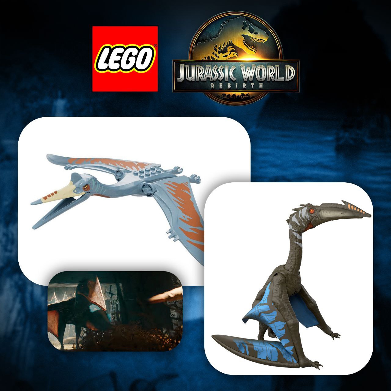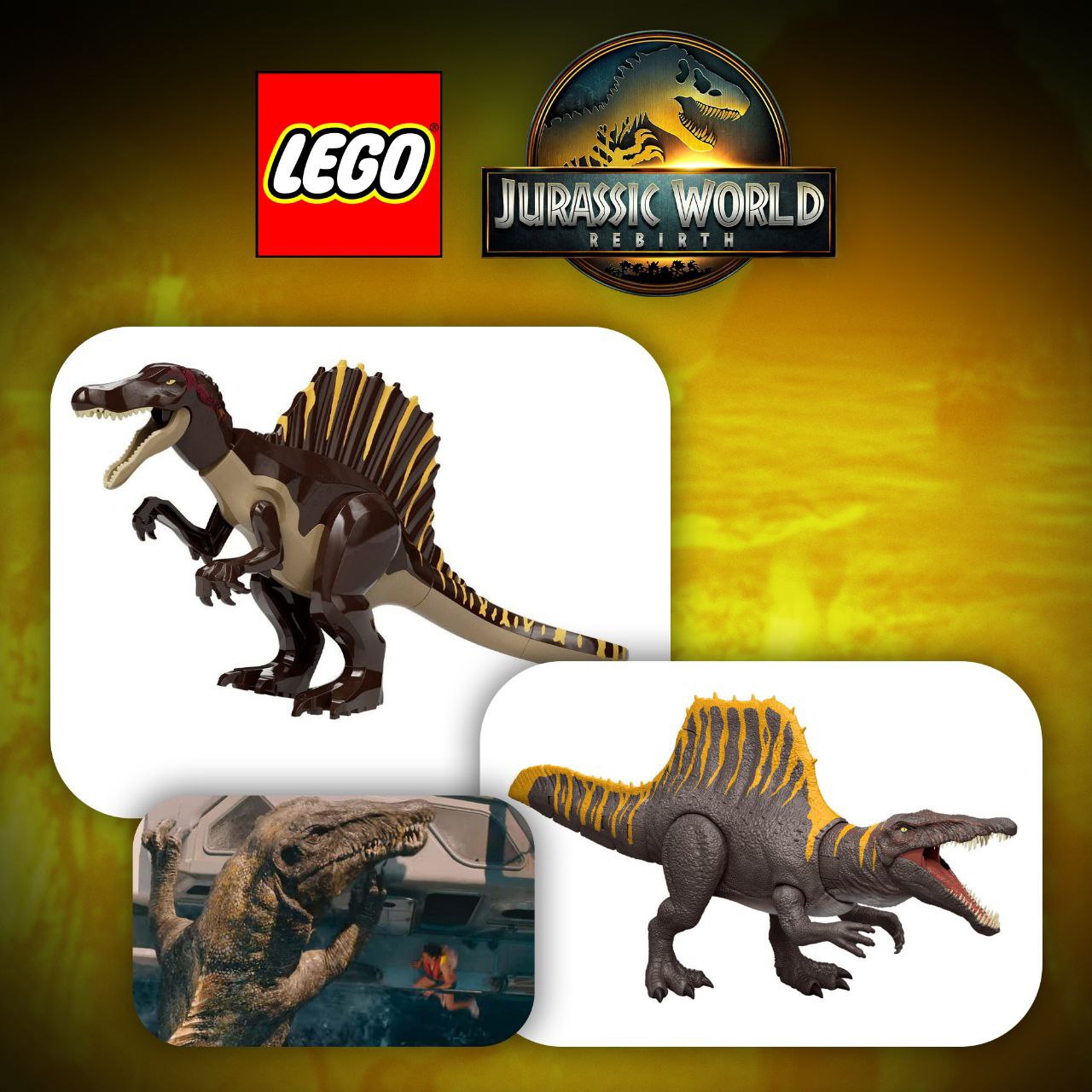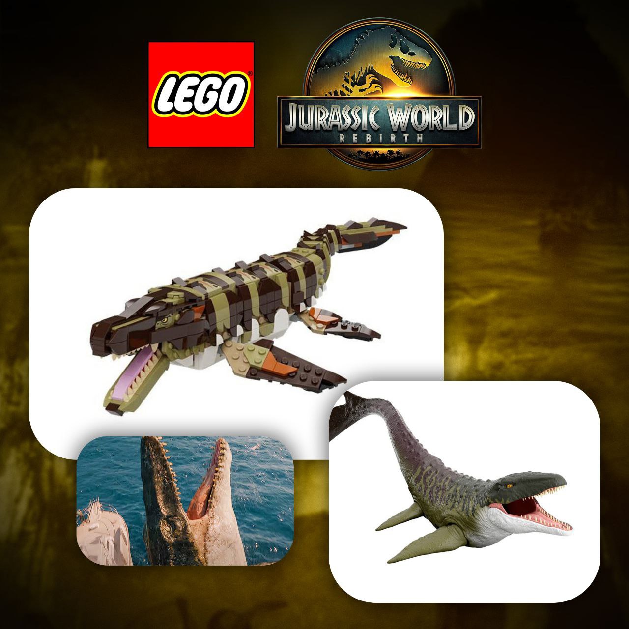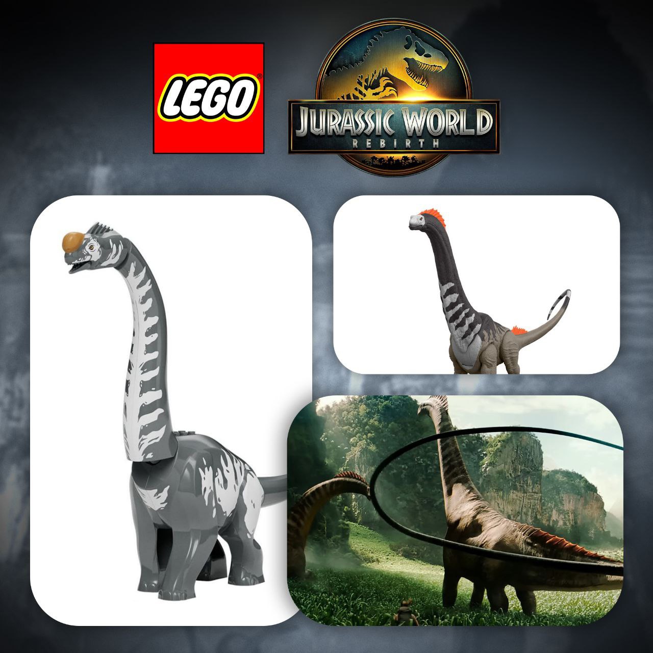 А вот и анонсы динозавров, приурочены к трейлеру нового фильма. Как по мне местами не попали в гамму цвета, да и мозазавра могли бы сделать цельной фигуркой, как это было с китом в наборе по аватару. Ну а вообще ждем полноценные наборы, может в них постройки будут крутые.