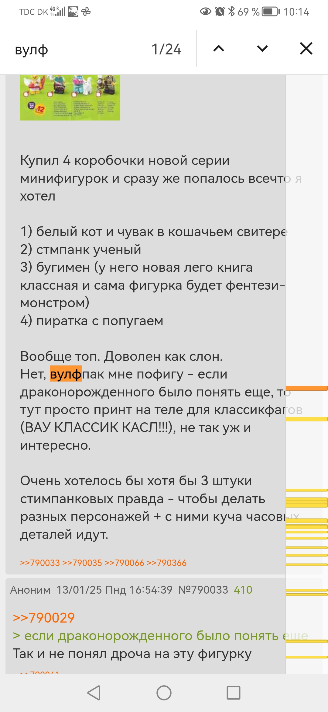 Мои мысли касаемо фигурки волка: Я согласен что сходить с ума из-за принтов по этой фигурке - это какой то маразм. Но, допустим, фигурка это источник более детализированного торса/ног для фигурок по теме. Но вот именно что "По теме"! А не в оригинальную серию!