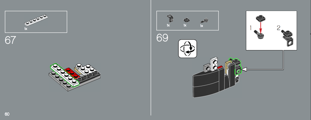 В чем смысл кубика желтого с палкой, если его возможность вращения никак не обыгрывается, а он просто намертво крепится, как обычный кубик? Или вот на втором пике, видите отверстие 4х2? Вот мы собираем третий пик и затыкаем его. Используется плоский квадратик, и плоский кружок. Почему кружок? Зачем кружок? в чем вообще смысл? Зачем вообще это отверстие было оставлять, чтобы потом его заткнуть двумя разными детальками? Почему хотя бы не джва квадратика? Или одна плоская деталь 4х2? Нет, квадратик и кружок. Почему? Да пошел ты на хуй, вот почему.