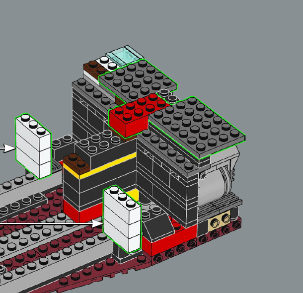 Допустим, что уникальные детали будут, но никто не мешает подключить фантазию и заменить их на композицию из других деталей, но, очевидно, что через сервисы такой подход биться не будет. Но, например, те же арки можно заменять на кубики и обратные скосы, будет более "кирпично", но весьма похоже.
