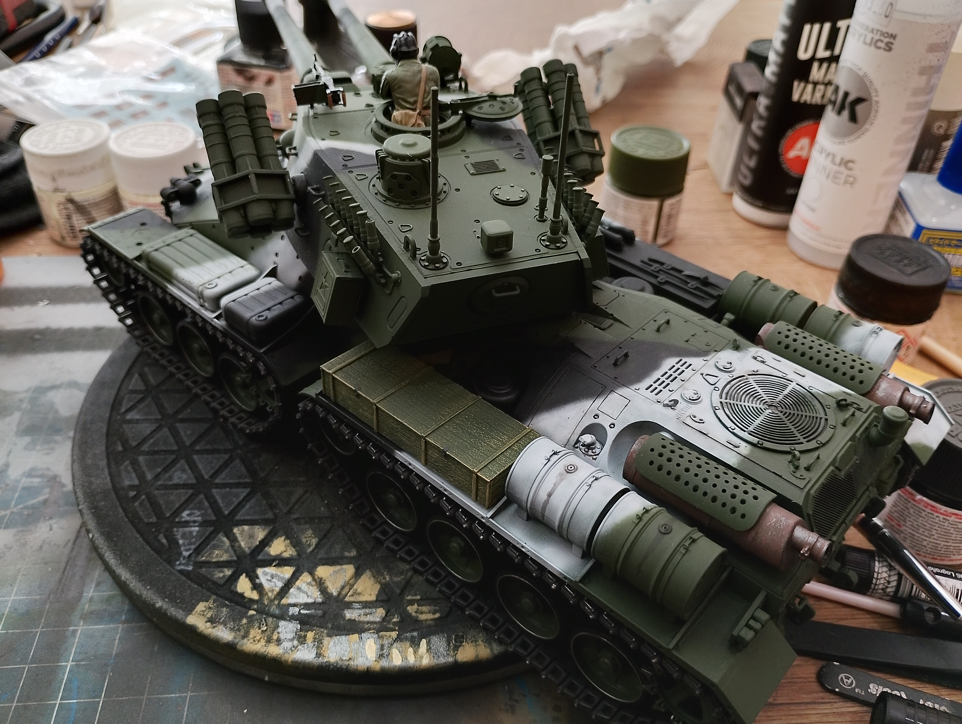 >>799314 Ну вот, еще одна готова. Стыковка от тамии это, конечно, мое почтение. Попробовал гусеницы красить в этот раз не черным, а ржавым - получилось сильно лучше, мне кажется. Хотя с грязью переборщил не к месту (но вам я этого не покажу). И да, я знаю, что зырки пиздец криво обмазал и надо подправить, но так западло снова за кисточкой лезть. Когда следующий буду обмазывать (а он уже собран, ждем грунтовку), тогда и подправлю. наверное. Победная тачка в День Победы, хотя это было не умышленно.