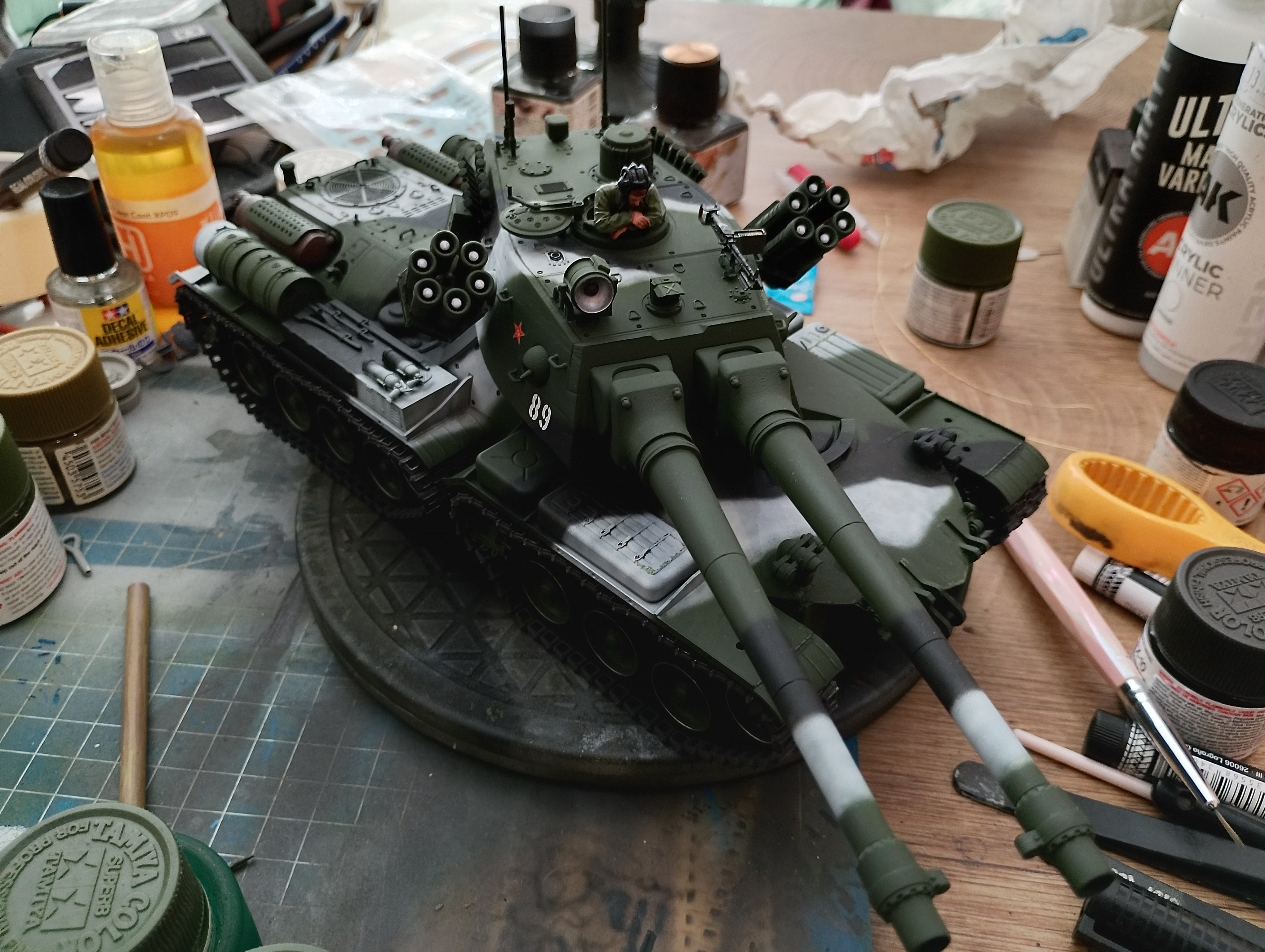 >>786069 Клей звезда такой же как тамия, но без кисточки, подойдёт самая дешёвая синтетика на один танк хватит как раз. Грунтовка тамия нахуй не нужна, покупай кудо в любом автомагазине(не эмаль, не алкид, а именно акриловый грунт). На красках лучше не экономить, но раз ты собрался красить кистями, то бери водный акрил валехо/пацифик/джимскейл. Японские краски под аэрограф и к ним либо спирт докупать, либо родные тиннеры, которые стоят прилично.