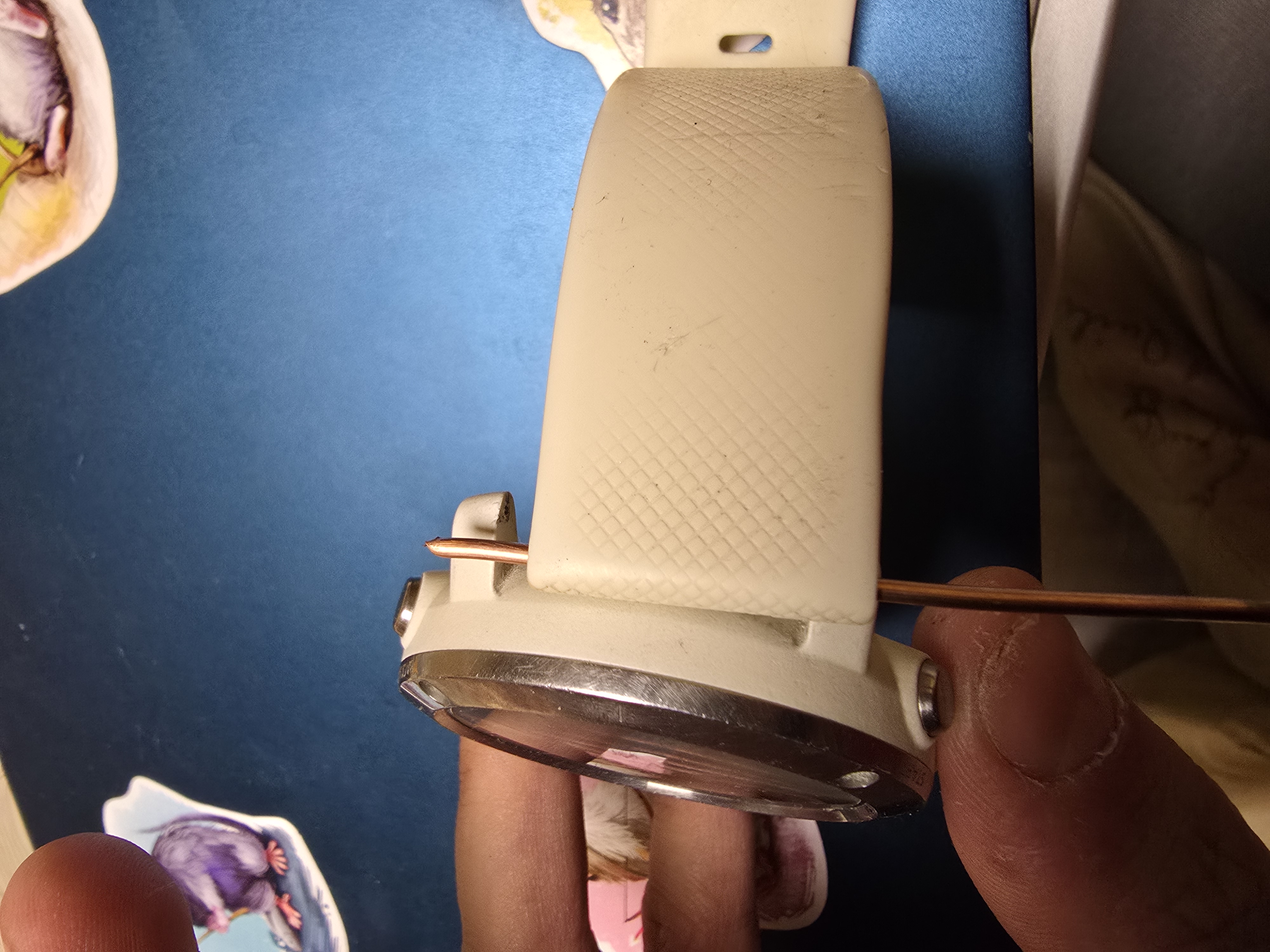 Анончики, хелп ми Сломалось крепление ремешка на моих часах. Начала выскакивать защелка с одной стороны паза. Придумал, что можно аккуратно просверлить тоненьким сверлом вручную или проковырять иголкой отверстие насквозь и загнать туда кусочек медной проволоки(пик 2) Один ее конец предварительно расклепать, а вот как расклепать второй конец? Ведь сами ушки на корпусе даже не железные и нагреть кончик проволоки не смогу. Какие есть идеи? В чем я просчитался? Учтите, что ремонт этот полевой, я в тундре сижу. На внешний вид пофиг, но и продевать суровую нитку и крепить на узелок не хочется. Заранее спасибо вам за дельный совет.