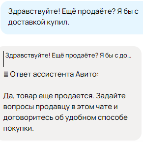 Классно они сделали. Задаешь вопрос по кнопке и тут же тебе бот отвечает. И непонятно продано не продано, откуда боту знать? Заебись зумерки сделали технику, боты общаются - метрика вращается, пердолы только не продаются и не покупаются.