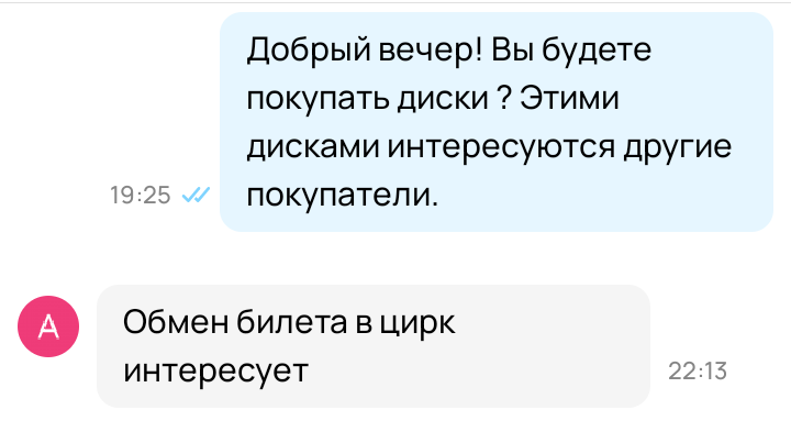 >>790657 >Авито предлагает насрать продавцу которому ты даже не писал.