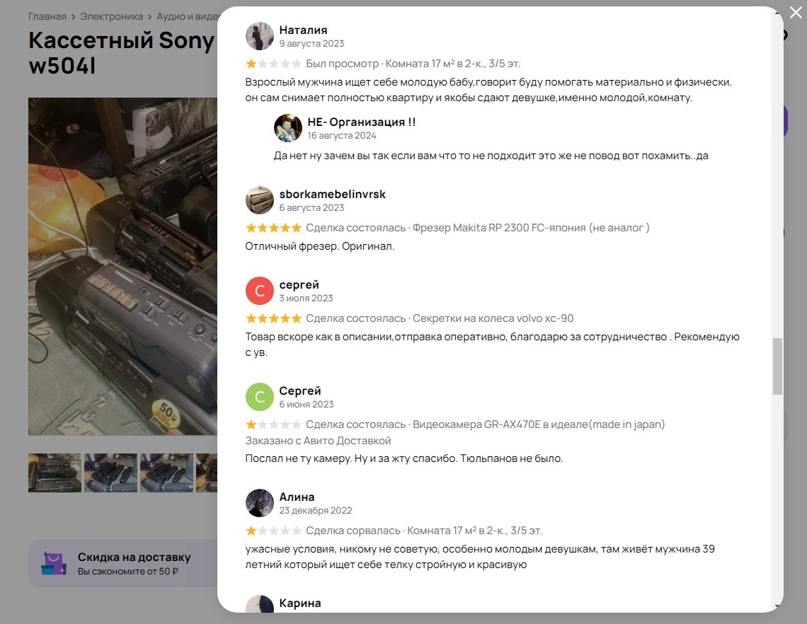 >>793689 вот и я о томже получается авито не заинтересованы как бы в самой продаже,заинтересованы именно в авито-продаже и % с ней,что впринципе и логично. Но ебучие отзывы и сраный рейтинг могут здорово подснасрать,пока нужный покупан будет сопли жевать что да как,перекупчик или шарящий в теме тупо покупают прикидываясь невтеме. нехватает механизма,гарантов,но опять же всякие там гаранты сделок и авито будут брать проценты. и остаются опять эти отзывы и рейтинг,Но опять же к примеру человек продал 10 вещей хлама с помойки,ему написали отличные отзывы и он ставит товар намного круче ценой.Берет предоплату и пропадает. Отзывы могут быть как накручены,как тупо без авито доставки,типа самовывозов. Как быть в таких ситуациях?