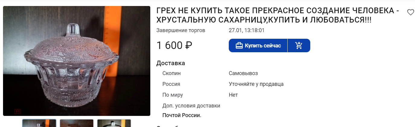 >>790285 завидую частоте заказов, у меня лежат пердолы чет уже больше месяца, хотя выставлял недавно мыльницу - забрали буквально за минуты 2, хотя цена на те пердолы чуть ниже рыночных