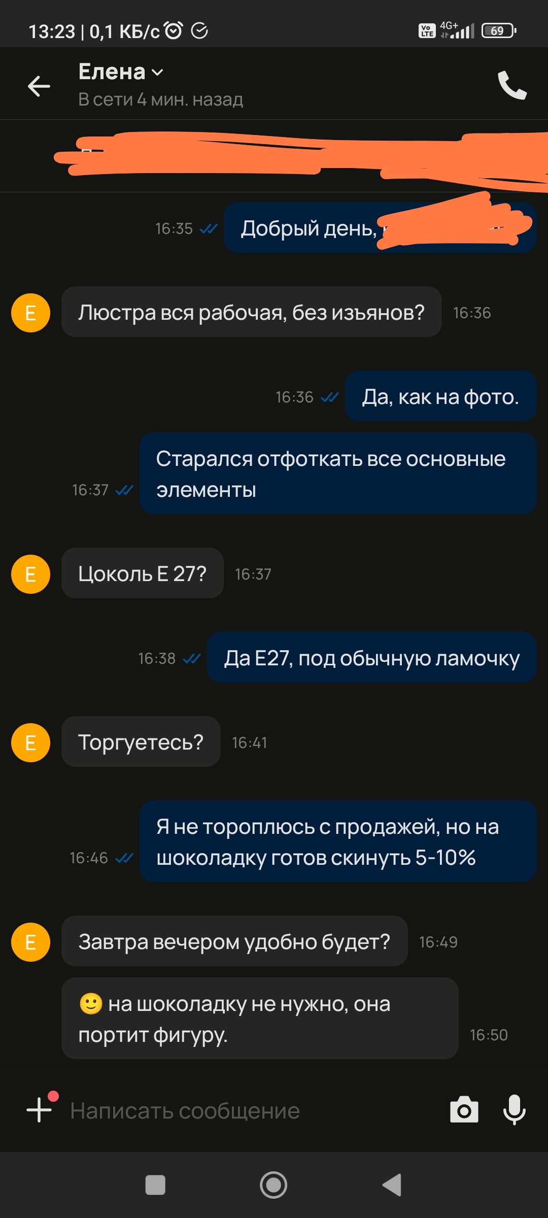 2. Договорились о встрече, цена, состояние, все было обговорено. Покупашка опаздывает на 20 минут достаточно. Начинает клянчить скидку под предлогом наличия пятна на заводской упаковке пердолы. Показываю нашу переписку, где это пятно снято крупным планом и отдельно выделено в рамочку и его ответное сообщение "Ок". В ответ начинает рассказывать, что у него маленькая зп да и вообще полно объявлений с ценой ниже, чегой та ты такой зажравшийся, маладой чилавек.