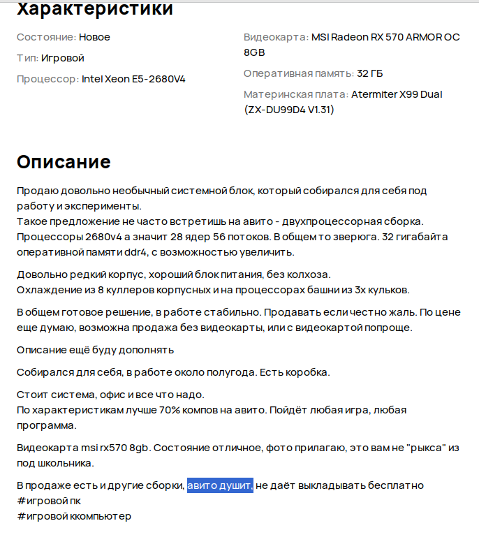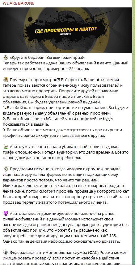 Да и в целом замечаю дроч авиты на АЛГОРИТМЫ. Много раз наблюдал картину: выставляешь объявление, и оно вообще не получает никаких просмотров, висит месяц без активности.