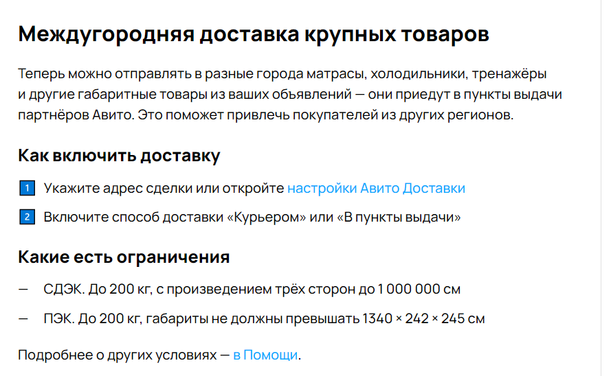 В: Стоит ли пользоваться Авито-доставкой (или аналогичным сервисом)? О: Сложный вопрос. Много обмана с каждой из сторон. На свой страх и риск. А еще авито с тебя 7% комиссию возьмет, не предоставив вменяемого выбора доступных вариантов доставки. Коробку на почту или еще куда лучше ищи сам заранее, и весь упаковочный материал. Ну или будь готов купить его за свой счет, потому что часто его нет (в почтовых отделениях выделяется ограниченное количество упаковок на месяц).