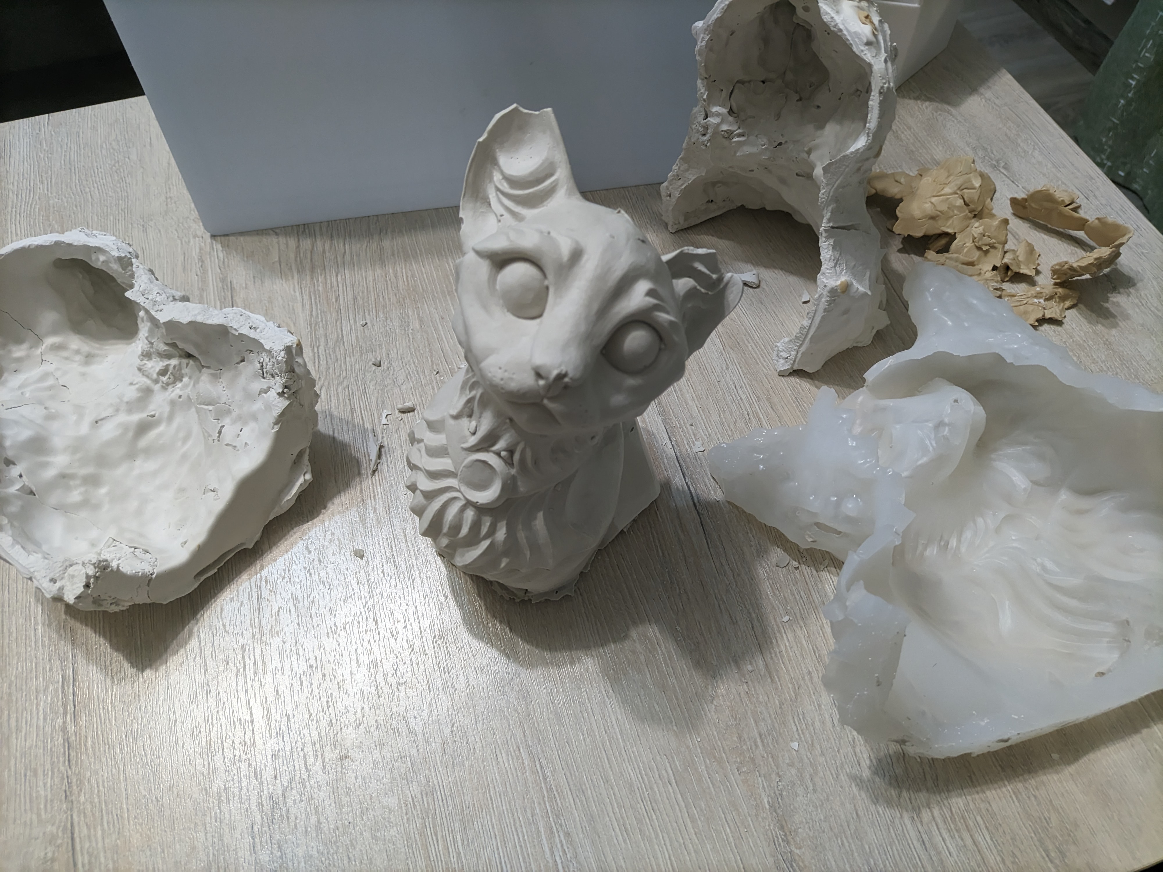 Даж не знаю, есть ли смысл писать в треде с такой активностью, но в закрепе тож не так чтоб людно по сабжу. Лепил самозастывайкой, с которой больше срезал ножиком для детализации, чем лепил, потому что она как зефир форму держит, пока не застынет. Решил ради прикола попробовать ск. пластилин, взял на вб гамму мягкий - охренел, насколько он удобнее в плане лепки, стало получаться все лучше и быстрее. но самозастывайка прекрасна тем, что из нее получается чуть ли не керамика по твердости в итоге, а пластилин остается пластилином. теперь понятно, почему полимерка популярна, т.к. объединяет походу плюсы обоих материалов, но я ей никогда не пользовался, у меня нет духовки и вообще я на ней разорюсь, потому что довольно крупное лепить планирую. короч, че делать, чтоб получать гипс в итоге? первая мысль - брать пластилин и заливать силиконом, но пишут в отзывах, что пластилин и силикон плохо совместимы - типа пластилин не дает застывать силикону в месте прилегания. да и не для всего силикон годится, мне не барельфы а именно 3д статуэтки животных надо (хочу специализироваться именно на котах, есть куча идей для продакшена).