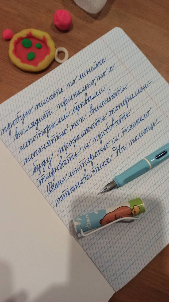 Не понимаю ручки с плоским пером. Мб у меня какая-то некачественная (так как взята за рублей 100), но приятной разницы в толщине линий не даёт, а писать ею заметно тяжелее