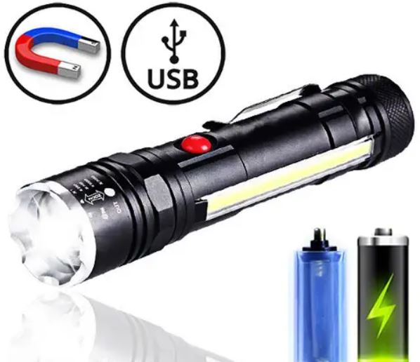 Вот на примере этого фонаря за 8 долларов, у него есть и скоба и COB светильник. Именно в таком сочетании и нужно покупать, так получишь ещё и Г-образный фонарь с свободными руками.