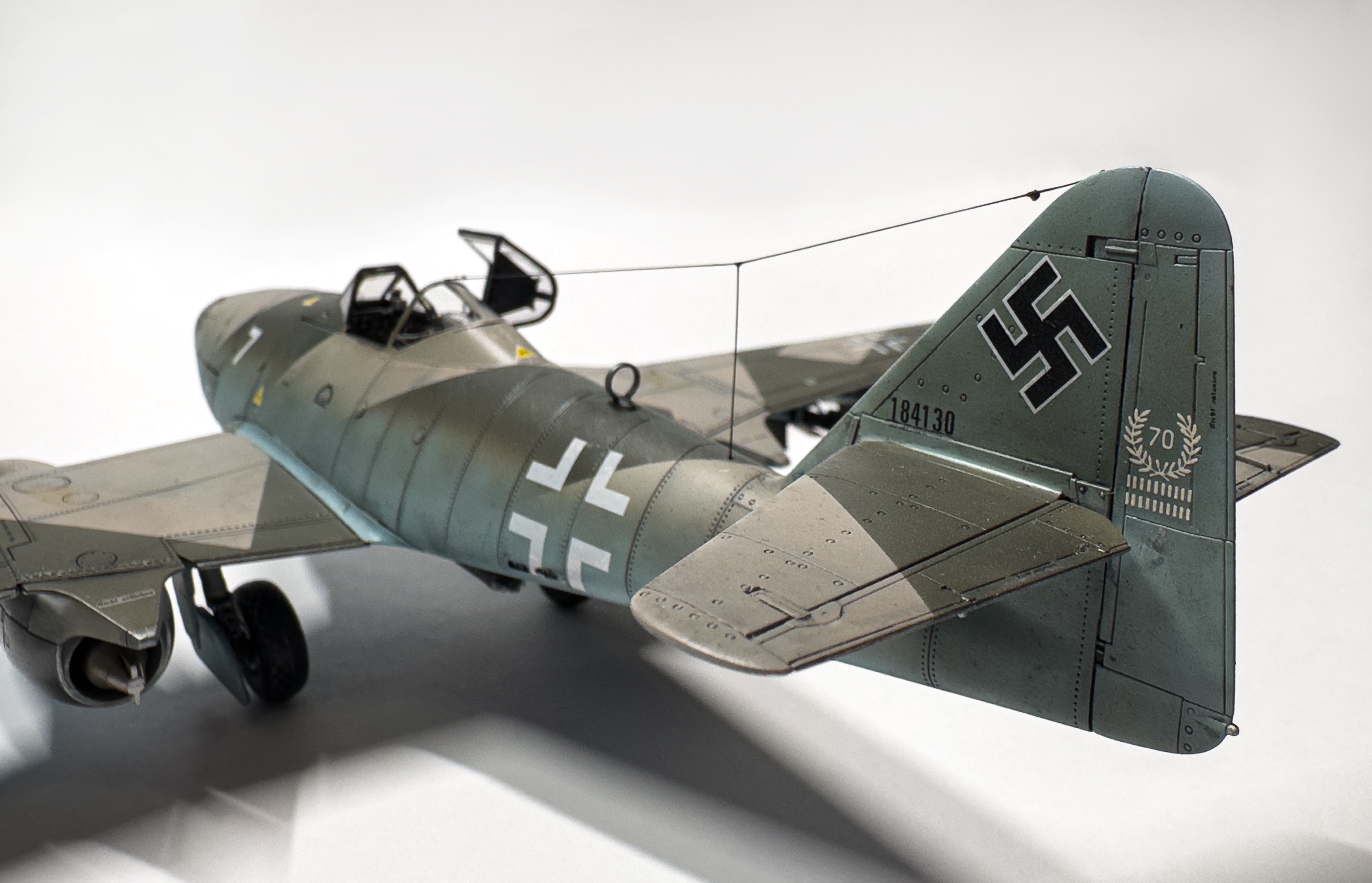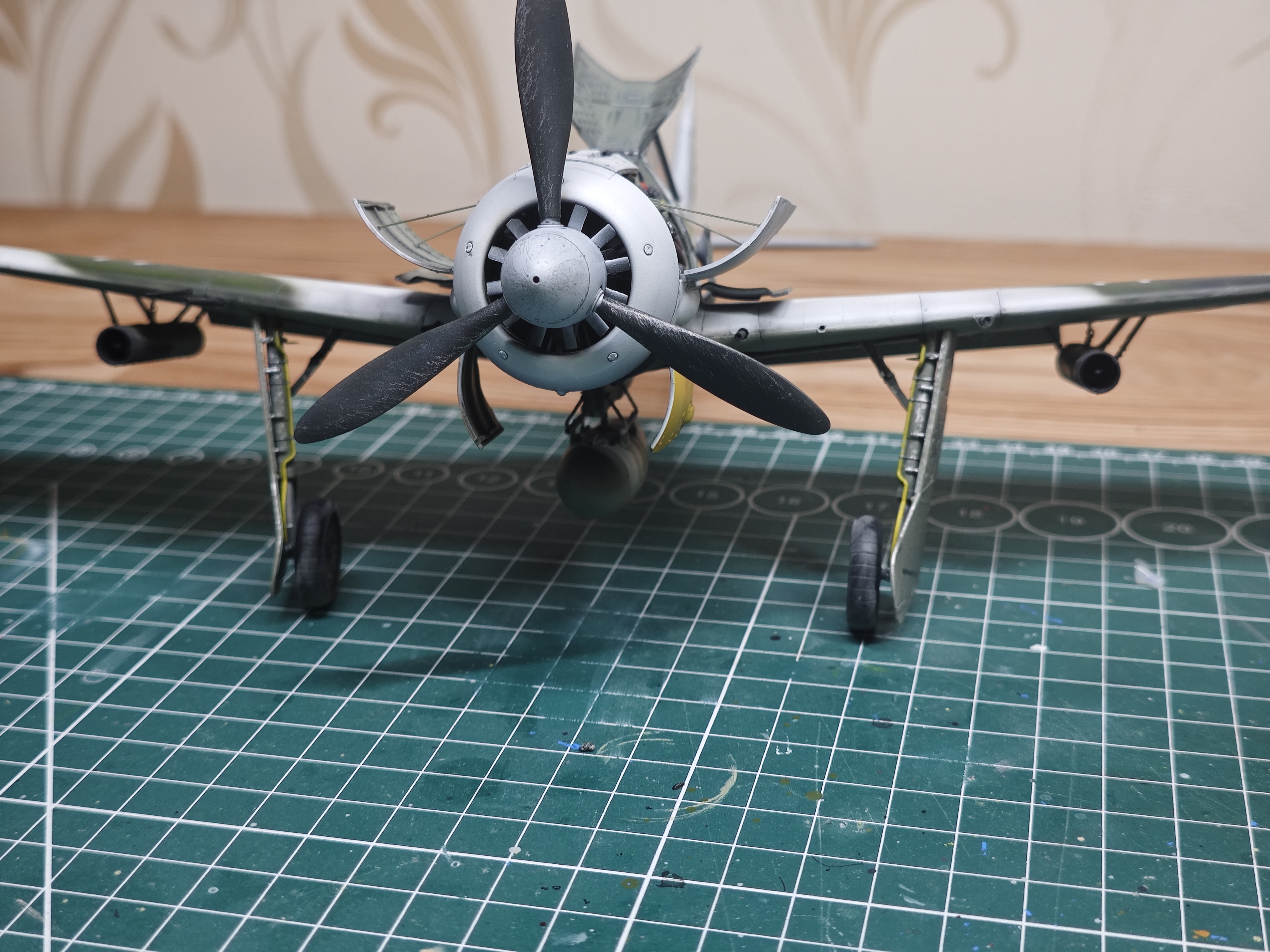 что-то тред совсем омертвел по сравнению с зимой. разбавлю своей третьей моделькой. покрас испорчен, зато я узнал, что на шагренистой поверхности делать масляные точки и смывку занятие не очень разумное, так как излишки убрать потом очень сложно. удивился, как смог сделать аккуратно антенны из тонкой лески, изоляторы делал пытаясь накрутить с палочки каплю суперклея, было неудобно. потом прочитал, что лучше попробовать клей пва. фонарь кабины окунал в футуры, давал просохнуть сутки и снова окунул. стал чище, но я пго испортил серой шпаклёвкой от тамии. мне пришдо в голову приложить фонарь, а неровности между ним и фюзеляжем закрыть шпаклёвкой, я подумал водой смою с фонаря, но не тут то было. в принципе прогресс какой никакой есть. КСТАТИ. палочку, нижняя половина которой деревяннная dunkelgelb от джим скейла я приклеил на супер клей. и никаких помутнений от него. да что скрывать, я фонарь в двух местах вообще на него приклеил, так как его пришлось сжать по бокам. похоже реально футура даёт защиту от помутнений от цианокрилата. но может я был настолько аккуратен.. снизу слишком большой нагар получился что-то, это большой минус для меня. ну и к вакуумным моделям я больше не прикоснусь. сейчас начал звездовский pz4h 1/72, хоть и есть проблемы со стыкуемостью небольшие, всё равно намного приятнее, чем точить каждую деталь и подгонять друг к другу. а ну и я испортил две декали, на этом номере M8CP должна быть акулья морда, но я их испортил в силу чуть неправильных размеров видимо фюзеляжа, так что пришлось заюзать пчелу. а декаль настолько качественная, что когда я её снимал с подложки, почти весь цвет остался на ней, и вместе жёлтого получился бледноватый. металлические детали не подкрашивал, так как это "фишечка" модели. в конце скажу, что впервые начал что-то делать из литников. тут это: нижняя кольцеобразная антенна накрутил гретый тонкий литник на кисточку, а кольцо сделал, расплавив клеем концы, антенна с конусом на конце, треугольничек возле колеса, палочка на фонаре кабины, пулемёты, трубка пито, которую я 3 раза ломал в силу неаккуратности