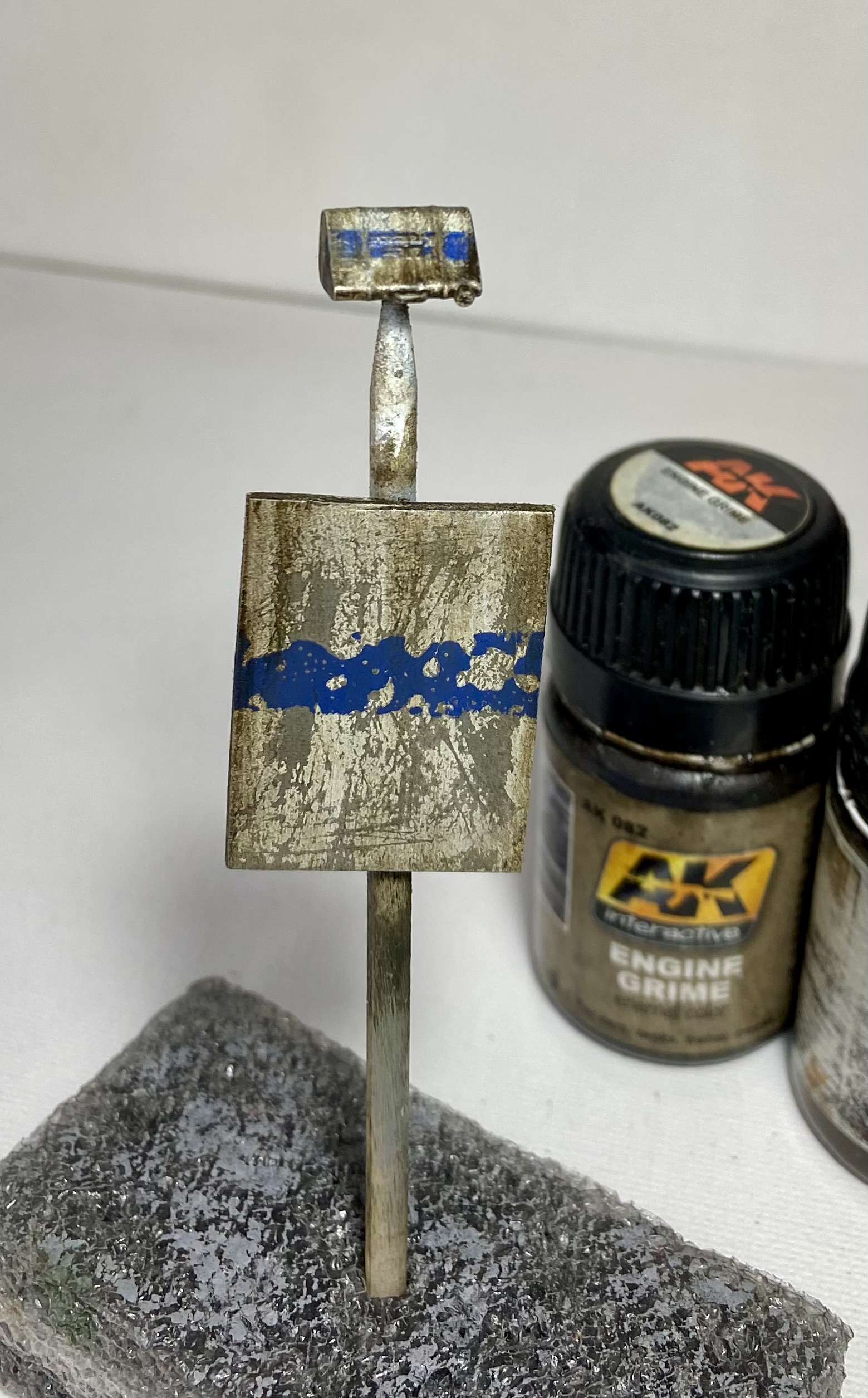 Продолжаю работу над своей диорамой. Задний двор высох, добавляют немного земельных пигментов для придания рельефа, закрепляю пигмент вайт-спиритом. Жду высыхания. После высыхания пигментов я грунтую задний двор серой модельной грунтовкой из баллона (вместе со всей остальной диорамой). Ограждаю зону покраски маскировочной лентой и выбираю 3-4 цвета (земля тёмная, земля светлая, пыль, хаки) и готовлю чёрный фильтр собственного изготовления. Как только краска высохла, сразу, без дополнительных манипуляций наношу широкой кистью фильтр. Получается интересная, рельефная почва, оставляю все сохнуть на два часа.