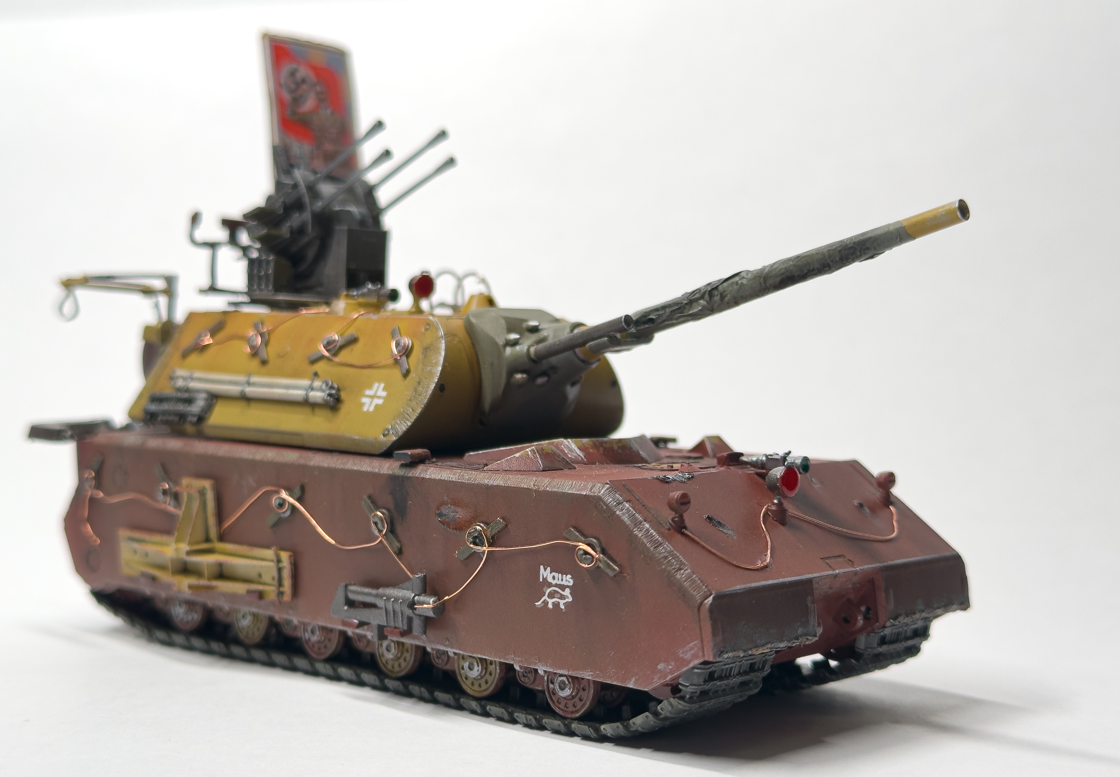хорошо что последняя моделька получилась самой насыщенной на детали + в маленьком масштабе. мавус 1/72 от пизды с мет. стволом и обвесом срамоты моделс. плакаты зип макета. 2 тонких слоя футуры и цвет у них стал насыщеннее. края подпалил паяльником