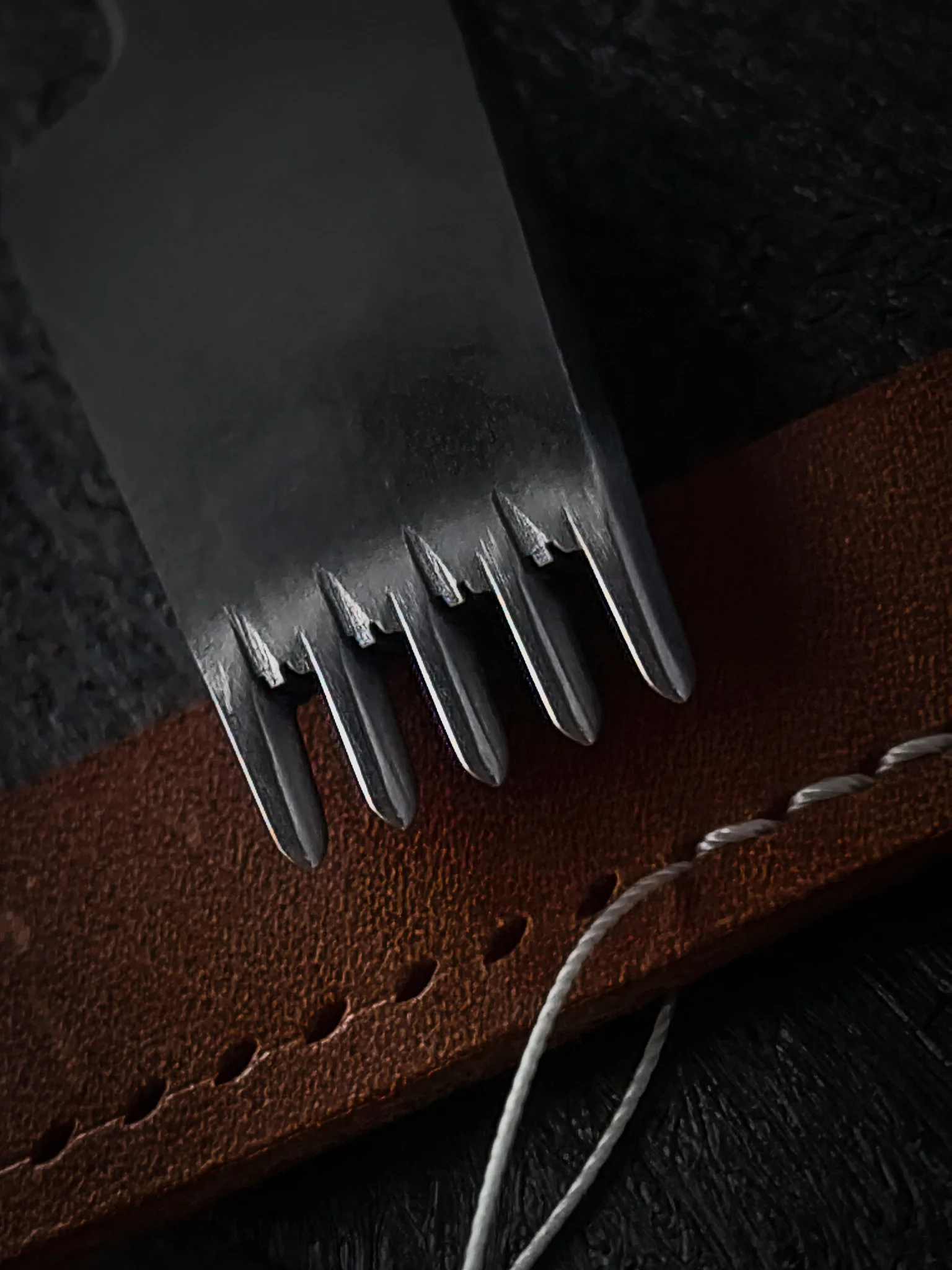 >>817622 Круглый высечной - если ты рубака и хочешь шить изделия в стиле Salty dog. Самые простые в работе пробойники. Мелкое изящное ими не пошьёшь - размер зуба в 0.8-1мм и нить 0.6-1мм, шаг начиная с 5мм (знаю что есть и 4мм, но это такое при таких толщинах) Скучный прямой шов. В общем для крупных изделий лучше, хотя что мешает взять пробойник под ёлочку с шагом в 5 мм? Покупать те, у которых зуб не ввинчивается, а поджимается сбоку винтом.