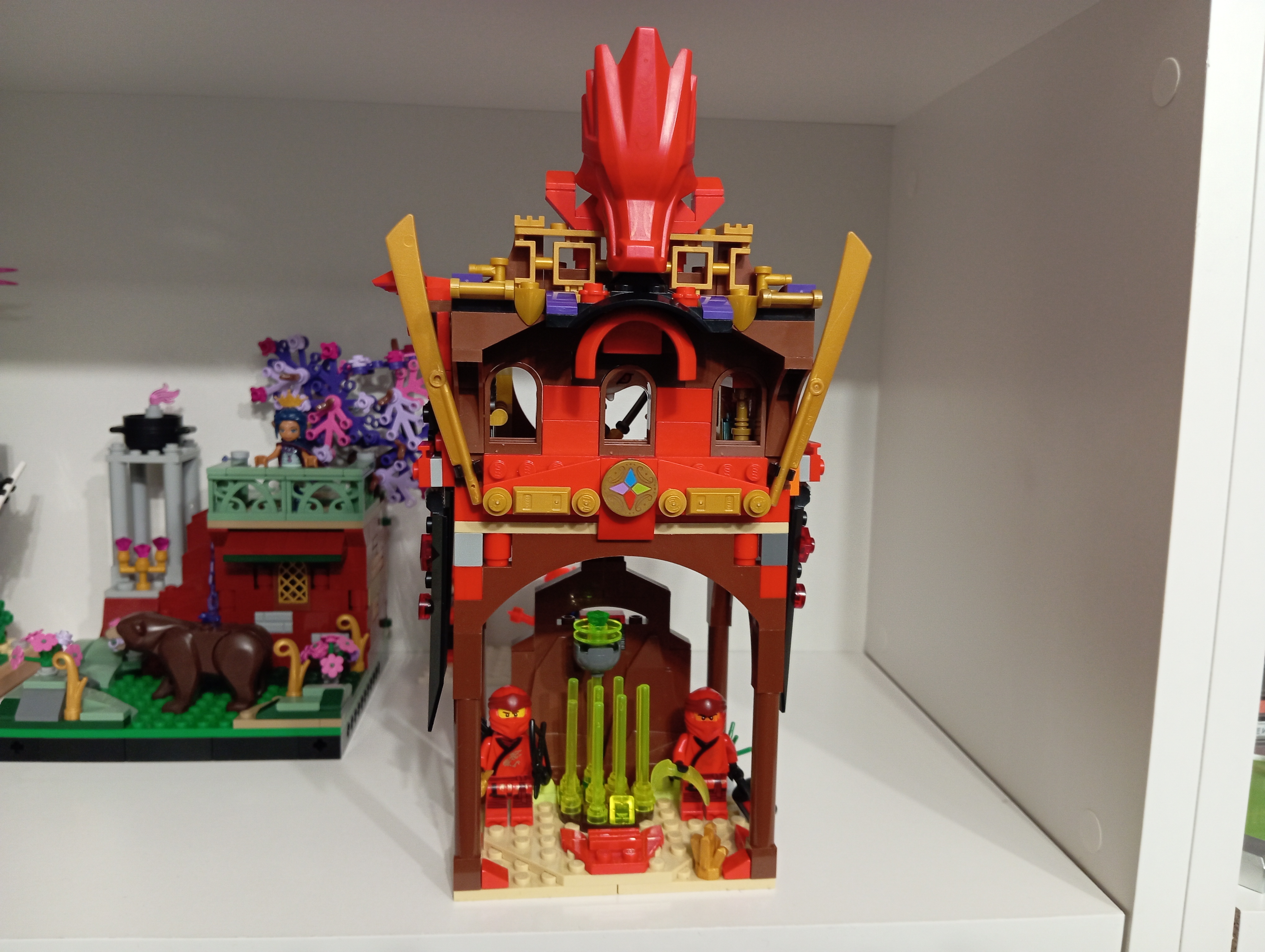 Чето сегодня не спалось. Пошерудил в ящике с россыпями с авито. Там было чуть чуть Ниндзяго. Никогда в эту серию не углублялся. Но так как чето собрать хотелось , сделал такой "храм красного дракона над источником силы"