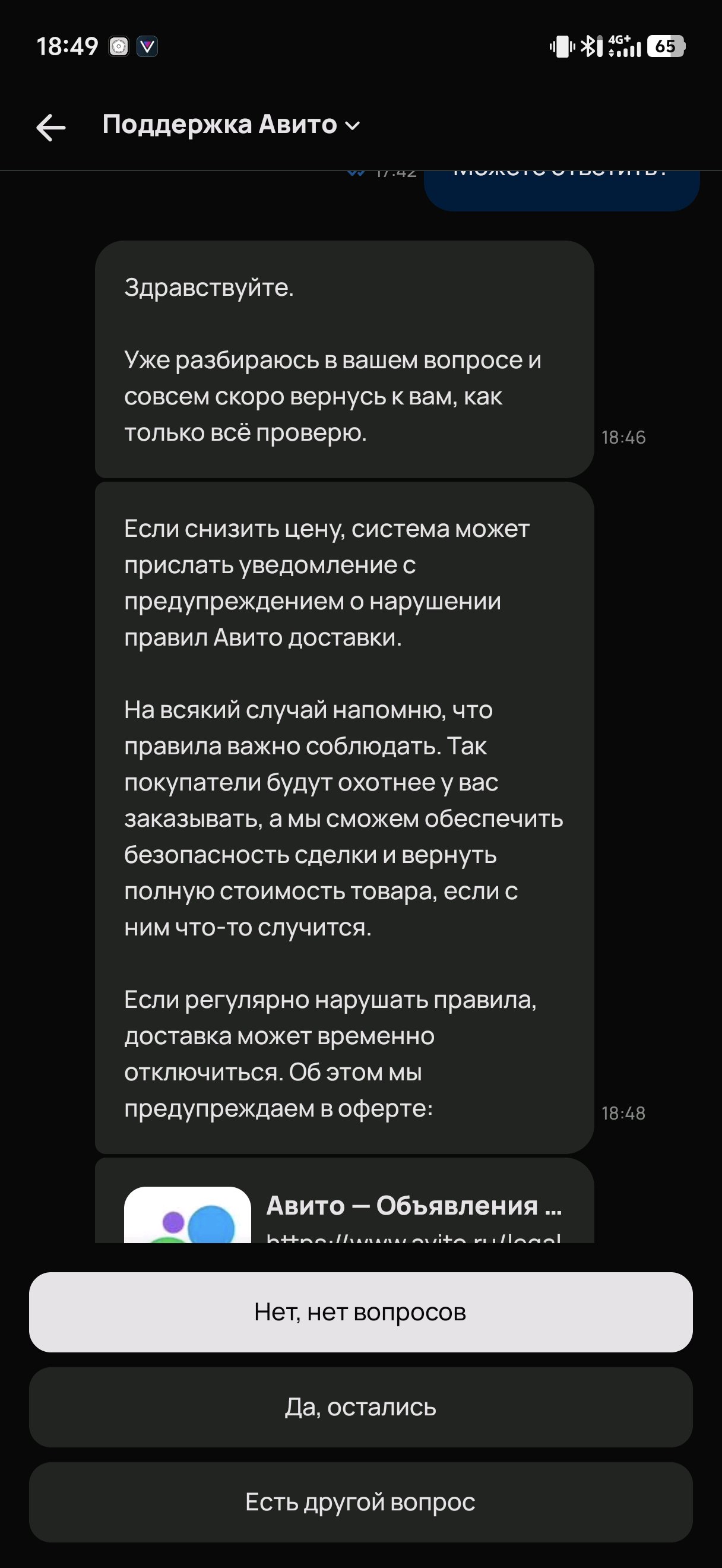 В: На авито приходят сообщения типа "еще продаете" или "отправите доставкой", отвечаю и дальше меня всегда игнорят, как быть? О: Гении из авито сделали кнопки для начала диалога, покупатель случайно их нажимает. Терпи.
