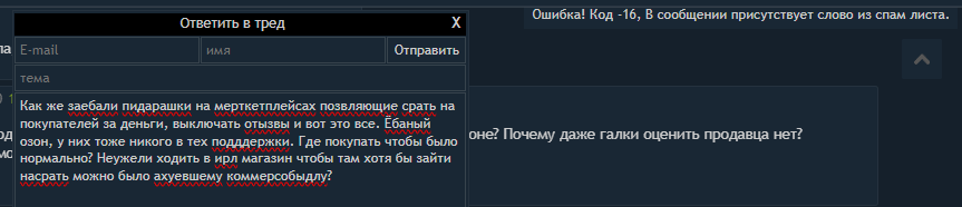 >>817302 а сейчас внезапно продавец может написать ответ на отзыв даже если не отправил ничего и он учитывается в отзывах, новый уровень сервиса от говнито я закончил с этой помойной площадкой, я три раза пытался купить пердолу и 3 раза 314дарашки нихуя не отправили это пиздец просто пиздец