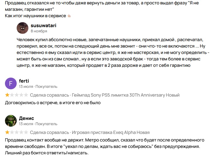 В: Что делать, если покупатель не пришел на встречу/не выходит на связь/игнорит? О: Это база. Привыкай и терпи, если нет мочи терпеть - можно накатать гневный отзыв, но авито может его отклонить по своей прихоти, магазины вообще сами модерируют свои отзывы, ибо кто оплачивает, тот и продаёт.