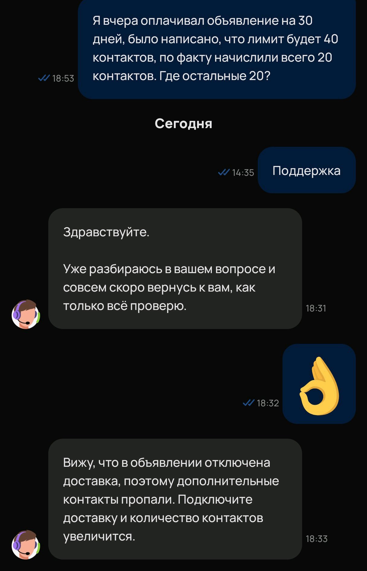 При активации объявления увидел новую хренотень - лимит на количество контактов. Ну авита, ну дельцы. Хорошо, что у меня специфический вид товаров, которых интересует 2,5 человека.