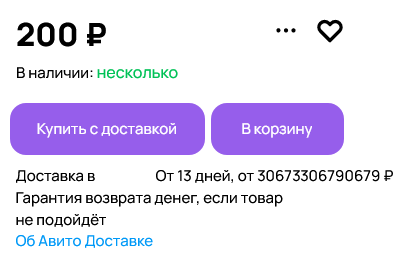 >>820317 Нихуя себе, 600 р за товар стоимостью в 200. Вот у меня такая же ситуация была, два покупана отказались оформлять, т.к. доставка дорогая (хотя товары были сами дорогие, на их фоне доставка выглядит адекватно). Я сам ни разу на авито не заказывал, но заметил, что иногда предлагают доставку за 1 р. Интересно, это единоразовая хуйня или регулярно по 1 рублю бывает