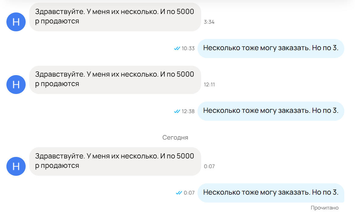 В: На авито приходят сообщения типа "еще продаете" или "отправите доставкой", отвечаю и дальше меня всегда игнорят, как быть? О: Гении из авито сделали кнопки для начала диалога, покупатель случайно их нажимает. Терпи.