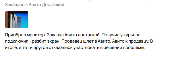 Если продаван наёбщик, то наёбывать он будет и с авито-доставкой - куча примеров было в тредах (отправляют полурабочую технику, паль и т.п.).