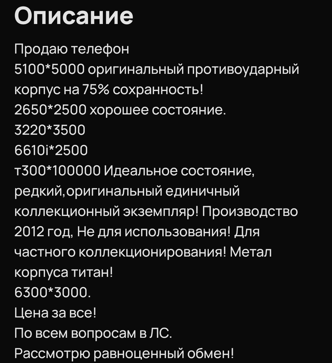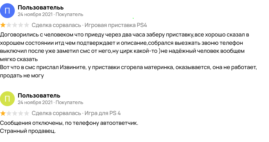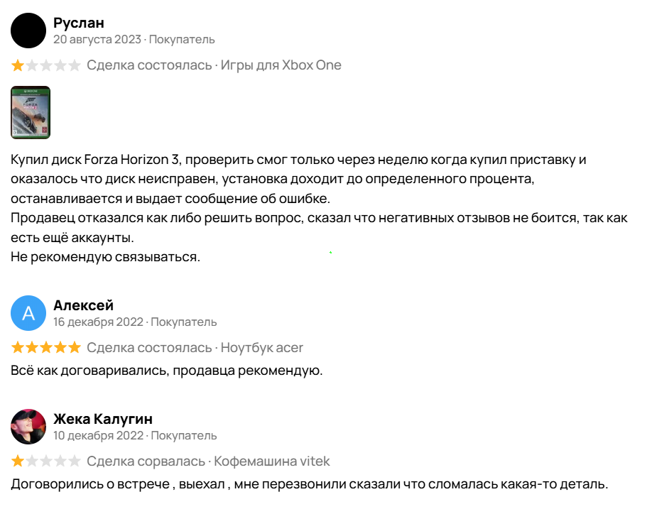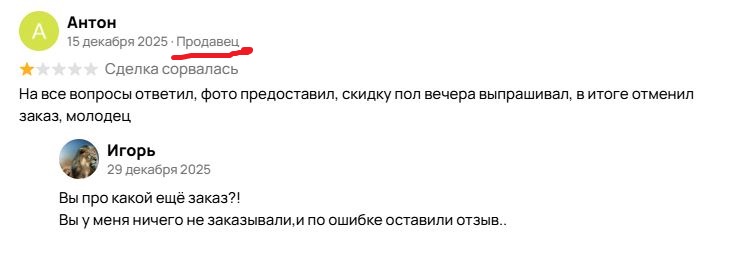 Часто вижу картину, когда чел выставляет за низкую стоимость пердолу и у него, очевидно, в ЛС/телефоне начинается просто ад из желающих купить, а потом в профиле таких персонажей появляются негативные отзывы типа "игнорит", "заказ не отправил" и т.п.