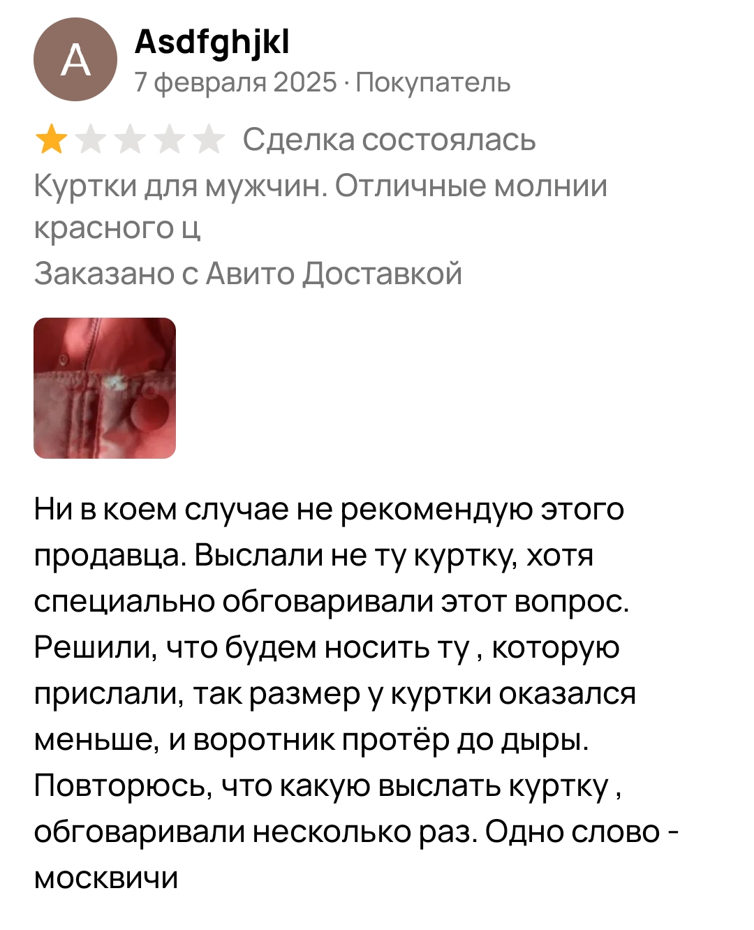 В: Покупатель ебанат и поставил мне единичку. Авито не хочет удалять отзыв, отвечая то, что покупатель имеет право на своё мнение. О: Ты должен понятно и доходчиво обосновать мадине, если отзыв не соответствует действительности, вводит в заблуждение, оставлен хуем с горы, с которым не было ни товарно-денежных отношений, ни договорённости о них.