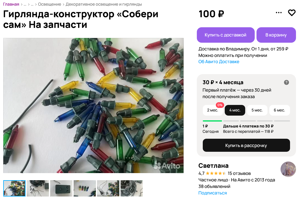 1. Для мастера на запчасти (лампочки, провод, трансформатор — всё в хозяйстве пригодится). 2. Для любителя квестов «оживи неоживляемое» (соберёшь — будешь героем; не соберёшь — получишь ценный опыт и запчасти). 3. Для творческих личностей — можно сделать светильник, декор для фотосессии или арт-объект «Ностальгия по новогоднему чуду в мае».