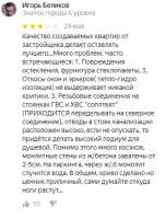 >>199004 Не сравнивайте только фасады и благоустройство. Анон выше писал как раз что "Придомовая территория и фасады гораздо лучше, чем у меня в регионе". Но вы же покупаете КВАРТИРУ, а не двор. Берём один из рейтингов новостроек: https://erzrf.ru/top-novostroek/rf?regionKey=0&datePublication=201201 В ТОП-20 всего 5 новостроек - московские, остальное регионы. Для того же Макаровского квартала не нашёл серьезного негатива по качеству строительства. Берём лучший ЖК в Москве по рейтингу - Зиларт (5-е место в ТОПе), и легко находим в отзывах кучу негатива. ПИК уже принесли ранее, там не лучше.