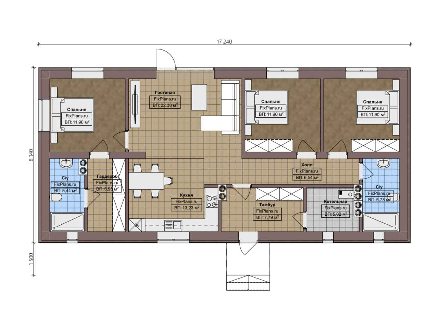 >>374051 Как же я люблю эти картинки где толщина стены НОЛЬ. Просто обожаю. Ты посчитал неправильно. Для примера пик1 (рандомный проект с одного сайта с тысячами планировок разной степени укуренности, я смотрел что есть из максимально вытянутых прямоугольных домов). Пятно застройки: 8140×17240=140333600≈140,3м² Общая площадь всех помещений: 5.95+7.79+5.02+5.44+5.78+11.93+6.54+22.38+13.23 = 107.83м², то есть в таком доме только стены съели больше 30м². А за вычетом холлов/коридоров, тамбуров, ТП и всего такого полезная площадь и того меньше. Пересчитай.
