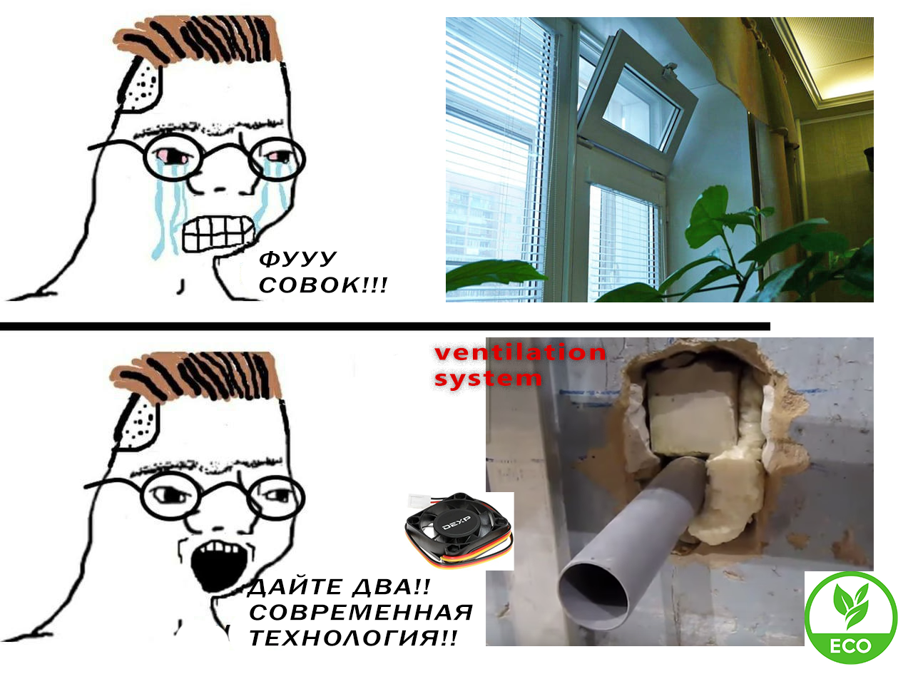 >Да, вот людям ставят такую поеботу, а потом люди жалуются что все эти вентиляции хуйня полная и комфортнее окно открывать