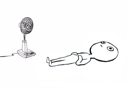 >Я поставил вентилятор к открытому окну, чтобы он надувал с улицы воздух, но тоже слабо помогает.