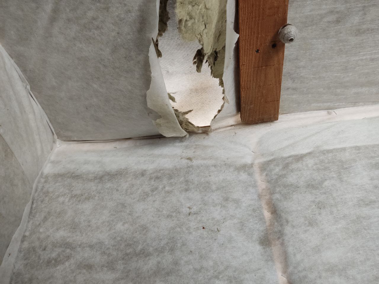 "тряпка" на стенах ВНЕЗАПНО оказалась пароизоляцией, причем наклееной правильной стороной. УКак узнал - случайно пролил на неё воду и посмотрел, как она весело и быстро скатывается, а не впитывается. Решил сделать эксперимент - налил в стакан кипятка, накрыл сверху куском этйо хуйни и прижал дюймовкой. Спустя 20 минут - на дюймовке нет и следа пара. В любом случае, буду всю её сдирать, крепить буду уже нормальный полиэтилен 200мкм, когда сделаю контр-утепление