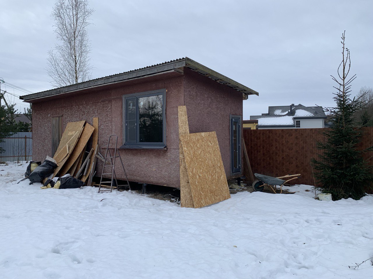 >>313565 (OP) > Есть ли на рынке какой-то утеплитель, который можно было бы заложить вместо текущей минваты? Либо более плотная минвата (недешевая), либо пенопласт с запениванием контура вокруг него. Я бы забил на твоем месте, ты же там ночевать не планируешь. Поставь ветродуйку на пару кВт и будешь с комфортом работать пока она воздух гоняет > Каркас построен весь на уголках - это не по технологии, с другой стороны, сарай небольшой 2,5м х 6м, можно и забить, как считаете? Можно забить, у тебя ОСБ жесткость конструкции даёт, плюс будка маленькая.