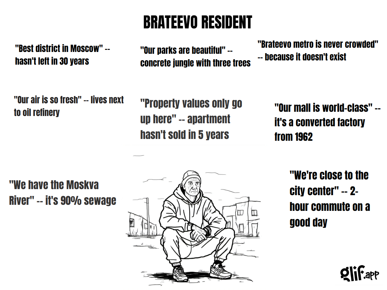 >>325215 В целом двачую. Мухосрань - это говно. Что Ростов, что Краснодар, что Воронеж, что Воркута - примерно одного сорта говна. Как бы не нахваливали замкадье, а оно как было уебищым всегда, так всегда таким и будет.