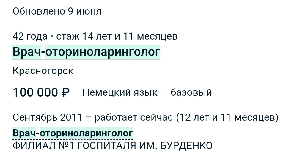 >>325883 Это цифры зарплатных ожиданий тобишь выше реального. Не показатель это цифры в вакансиях, где 200к пишут Выше по треду рассказы из разряда одна бабушка сказала, аноним не врач и даже не медбрат, ситуацией не владеет. Профильная больничка номер 1 в стране не показатель зп.