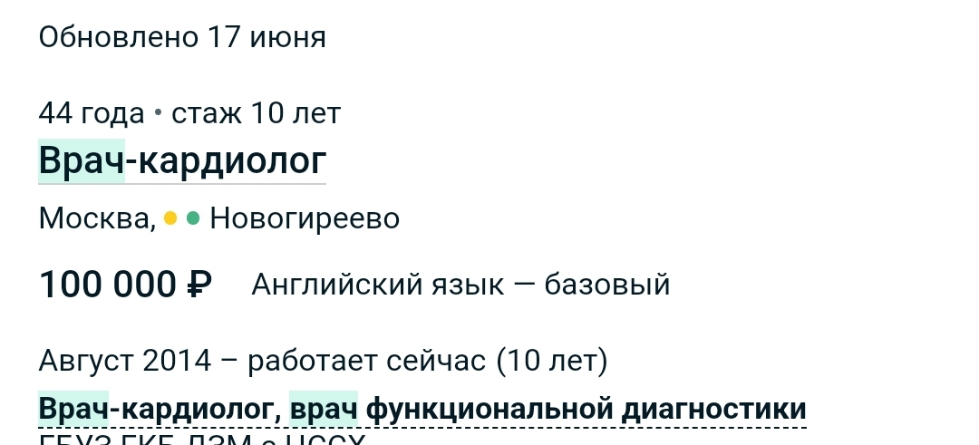 >>325894 >там какие-то бомжи которые сначала в шараге протирали штаны, потом в городской клинике штаны просиживали и делают такое Нормальные специалисты со стажем. Такое не делает ни кардиолог, ни психиатр. Это узкие спецы. А что плохого в городской клинике? В частной зп не лучше. >предлагают, ничем не отличается от других профессий Не предлагают. Все по блату.