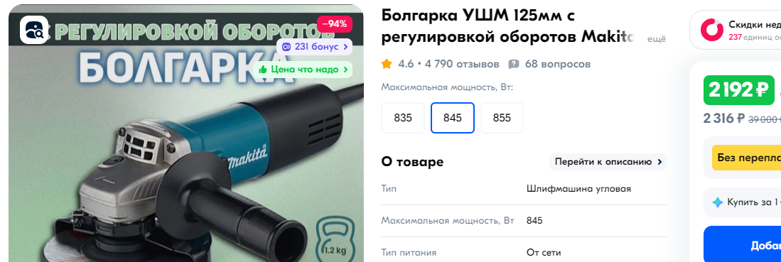Покупаем паленую макиту, профессионалы. Если на озоне уже десятки тысяч хороших отзывов, значит, анон прав, надо брать макиту, тем более за 2к вообще норм.