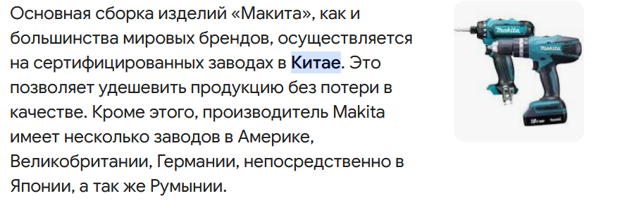 >сравнивай теплое с мягким Суть в запросе. Но вообще да, в мире инструментов наверное сложно найти сценарий, который не удовлетворит Макита.