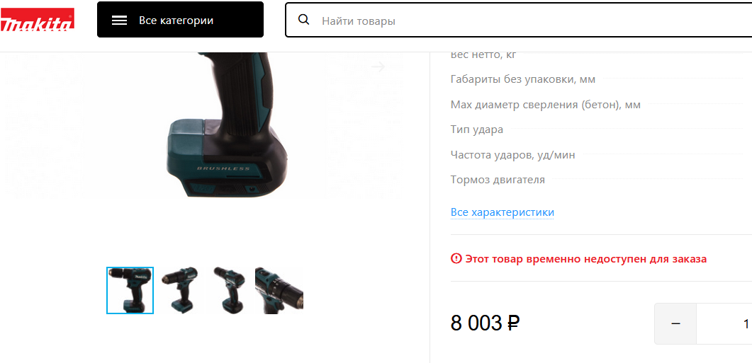 >>329976 Ты неправильно смотришь. Макиту надо покупать тушкой. Уже написал ddf453 самый дешман, у барыг на авито новый 3.5-4к Если охота бесщеточный то ddf485 на авито 6-7к, на всеинструменты 9к Аккумы зарядку не оригинал с озона/али. Кейсов на авито навалом от макиты от 500 рублей. У нас например в городе завод и при нем магазин некондиции, там помимо всякого говна продают новенькие кейсы от макиты, потому что на заводе они не нужны.