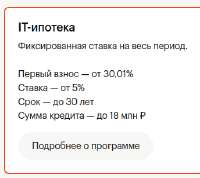 >На ноль поделил. Это тот самый "банк", который заводит за корягу айтишников и молча поднимает процент по ипоте с 5% до ключа + 2.5% сверху, если айтишник не смог подать доки подтверждающие работу в аккредитованной компании в нужный срок Я тебя удивлю: так сделает любой банк)) Ему выгодно получить субсидию от государства, и потом заставить ещё платить тебя. Это главный подхвох айти-ипотеки