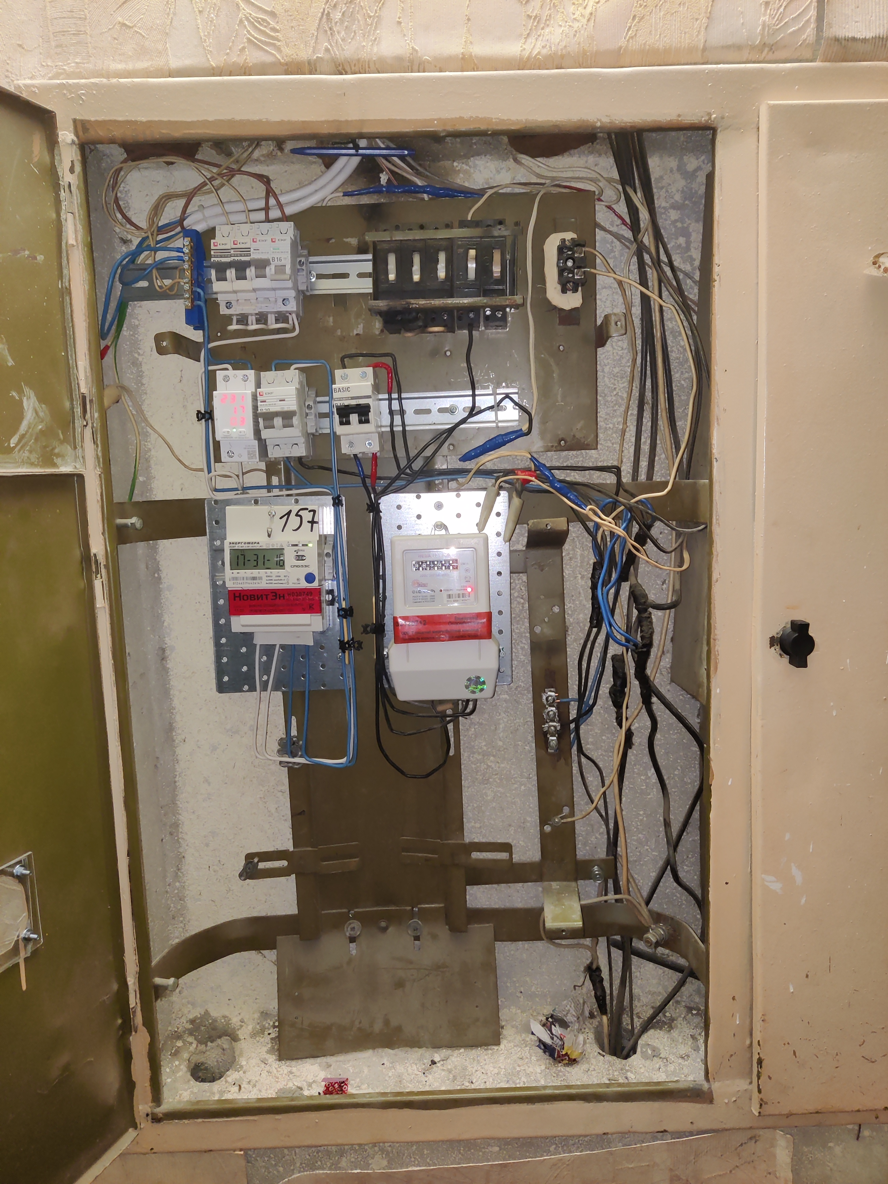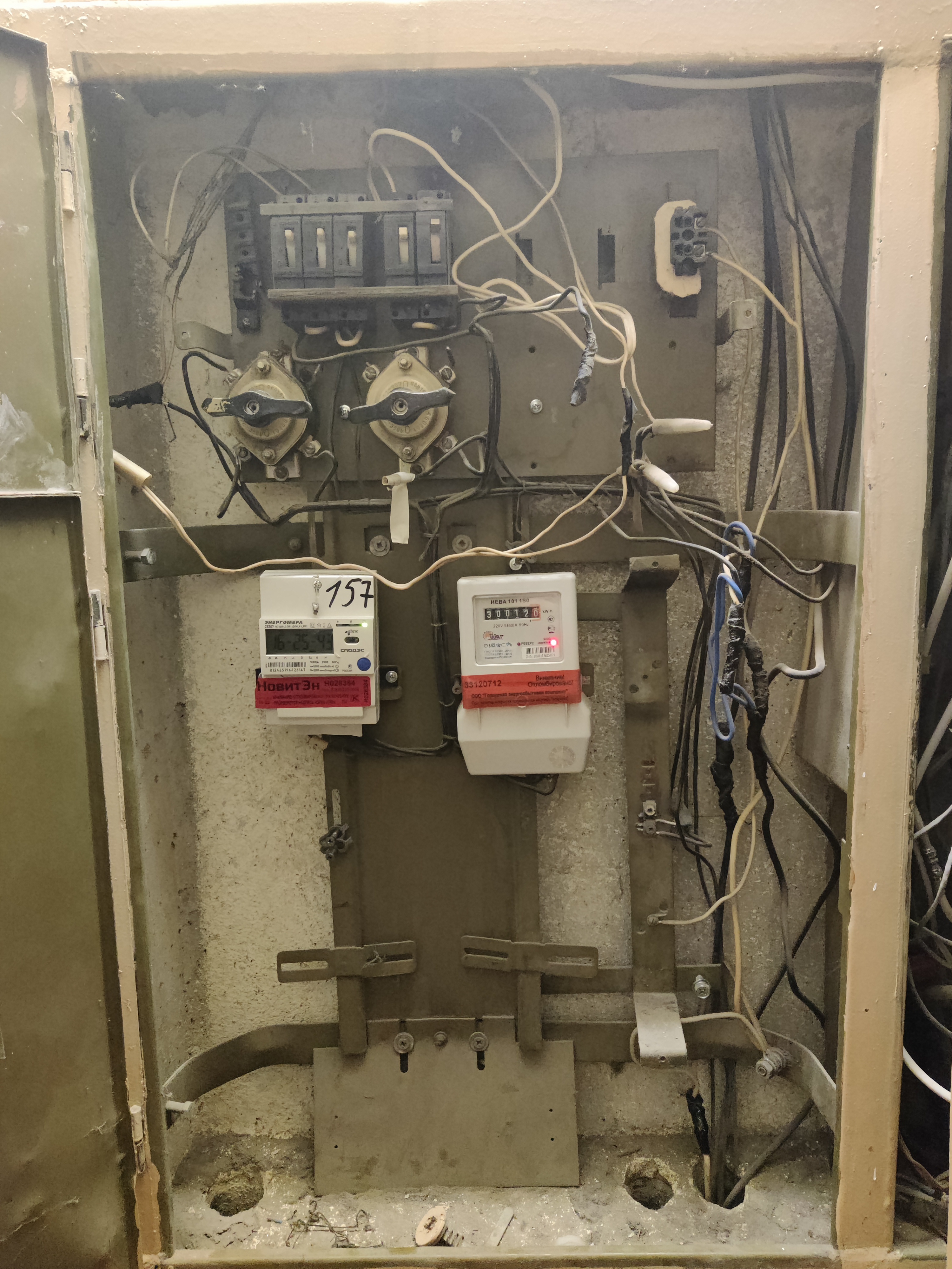 >>334115 Напишу еще раз почти то же самое, а то вчера перед сном уже плохо соображал. Счетчика два, но от орехов идут две линии в огромный общий рубильник, а от него уже на счетчики. (Забавно, что вводную фазу и ноль до счетчика мне белыми сделали, а ему синими, а уже от счетчика у него она белая (L) и синяя (N) как надо, а у меня оба белые. Но это доеб до цвета).