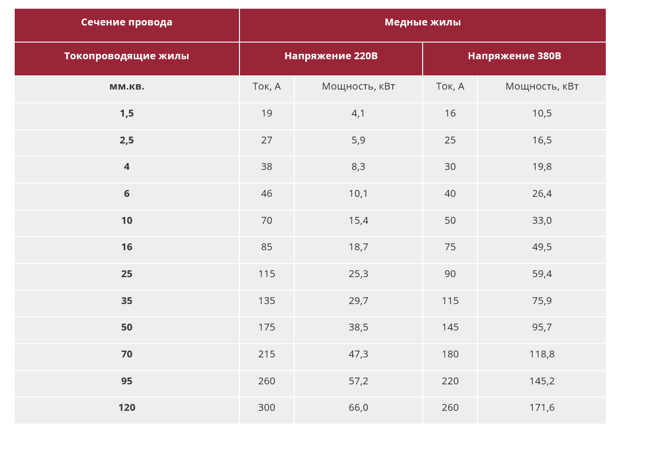 — Кабель, сечение, номиналы автоматов… По нормам ПУЭ для жилых помещений и адекватной цене - минималочка - ВВГнг-LS (можно и дороже и лучше, если параноик) NYM и ВВГ без индексов нг-LS - кроилово. Если же "электрик" предлагает вам для стационарной проводки ПНУП, ШВВП, ПВС и т.п. - гнать уебка поганой метлой. — Розетки максимум 16А. Свет — 6 или 10А. На остальные потребители – в соответствии с п.3.1.4 ПУЭ. Для меди на 220В домач рекомендует следующий ряд "Автомат-Сечение": 6-10А – 1,5мм2, 16А – 2,5мм2, 20-25А – 4мм2, 32A - 6мм2, 40А - 8мм2, 50А - 10м2. Для уставшего люминия на порядок меньше. Еще один нюанс - для однофазной электрической плиты по СП 31-110-2003 сечение линии должно составлять не менее 6мм2., вне зависимости от ее мощности.